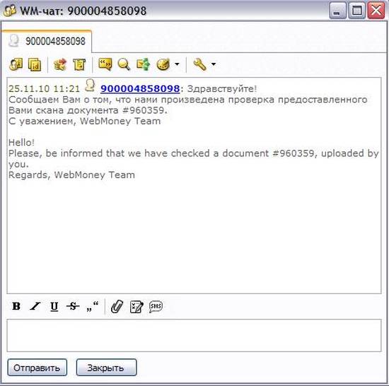 1.3 Ждите окончания проверки, которая может занимать от одного до двух дней. Как только проверка будет осуществлена, Вы получите уведомление в WM Keeper: